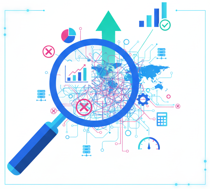 財務諸表、販売管理ソフト、日報、エクセル管理の在庫表など、社内に点在し、活用されていないデータを当研究所が統合的に監査します。